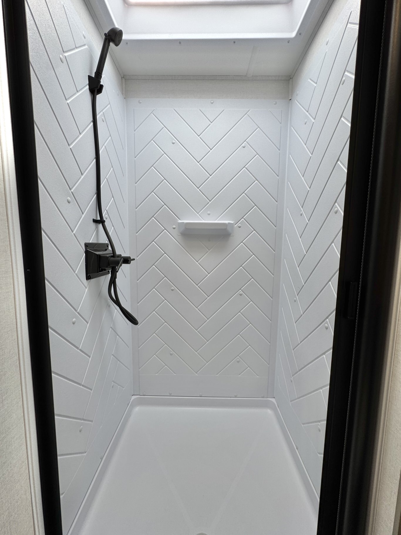 -The bathroom offers a 30" x 36" shower, large sink area, and direct hallway access