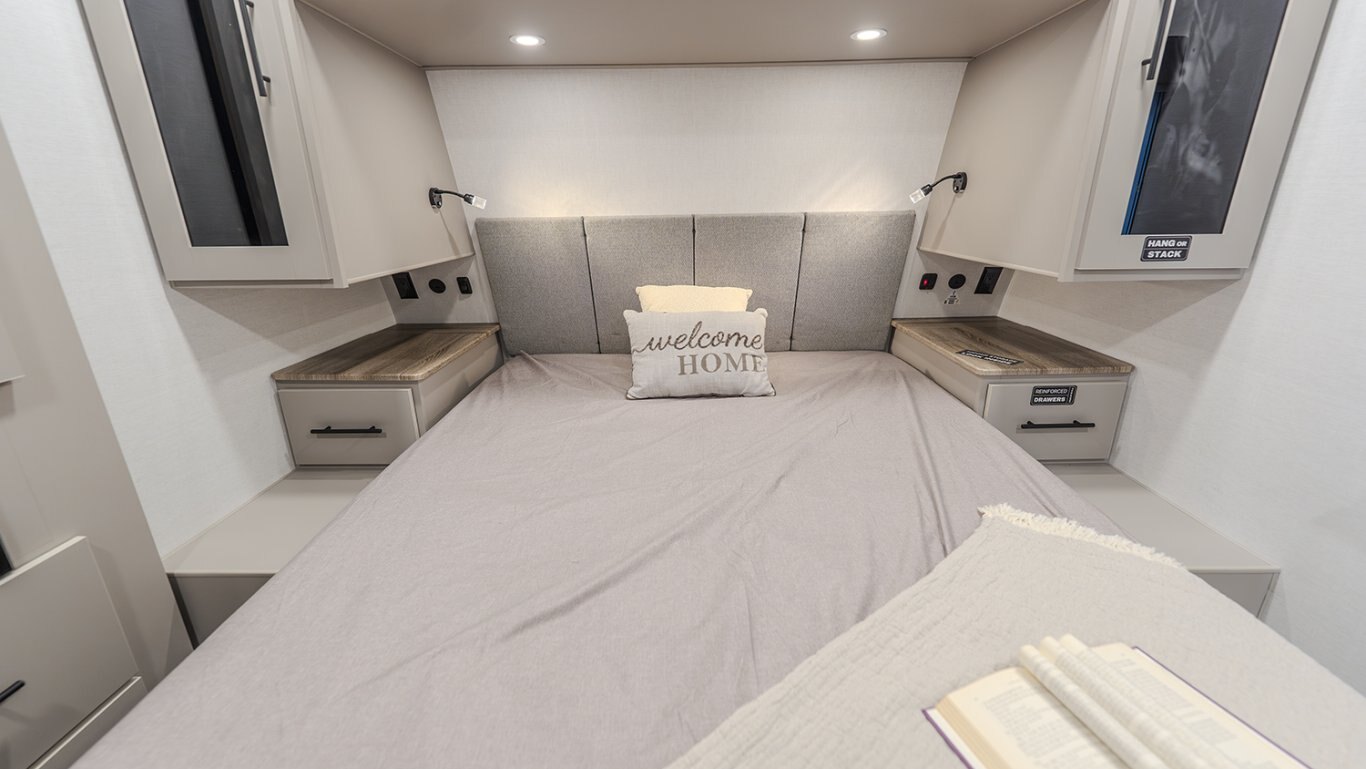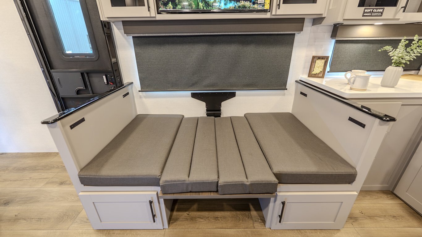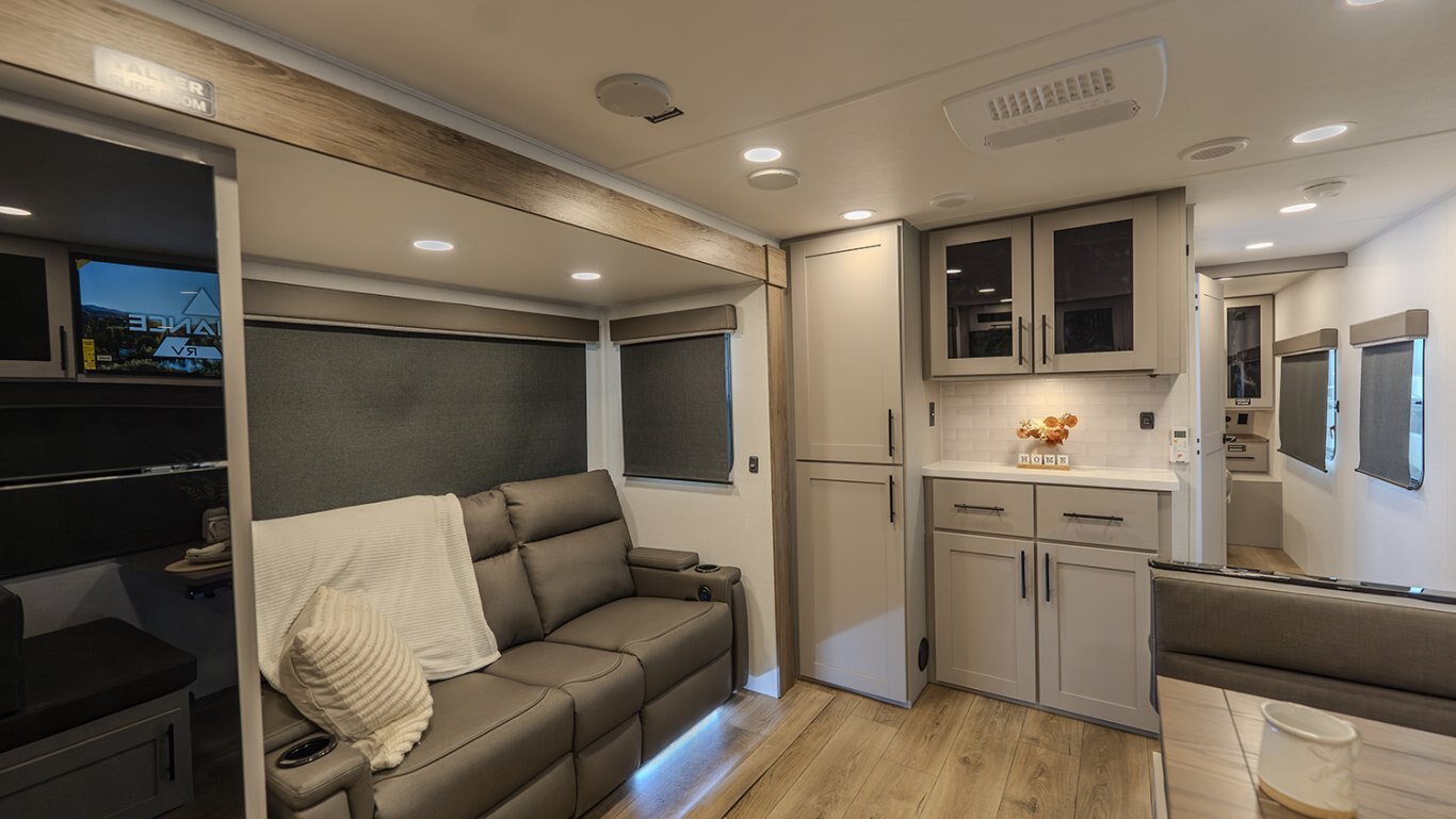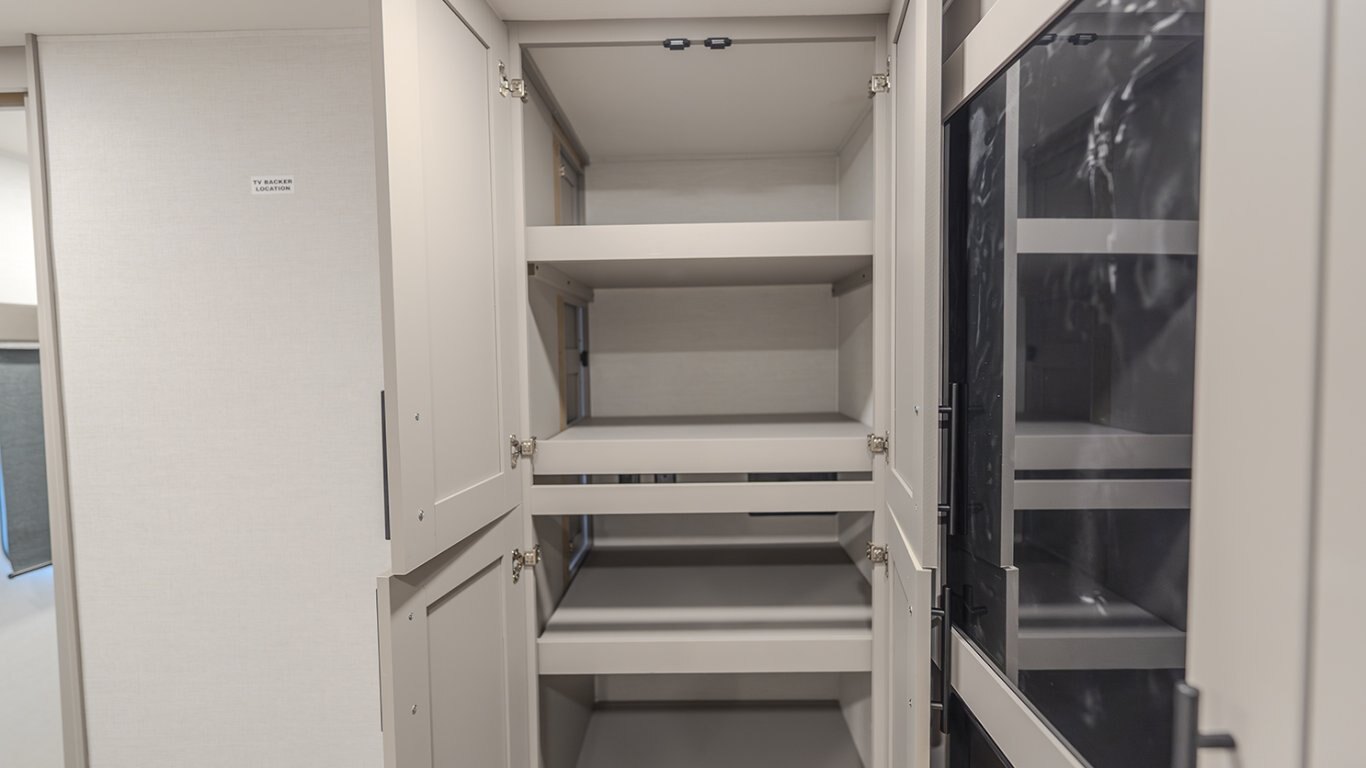 | The Delta 274RKW offers a sleek, rear-kitchen design perfect for couples or small families looking for comfort and utility on the road. A spacious kitchen and entertainment-ready living area make it easy to unwind, featuring a theater seat, 40" TV, and optional freestanding dining setup. Smart storage solutions like a pull-out pantry and overhead cabinets keep essentials organized. The full bath with washer/dryer prep and the private queen bedroom with built-in fireplace and wardrobes add a residential feel. With a 19' awning, outdoor griddle, and well-thought-out layout, the 274RKW makes every trip feel like a retreat. |