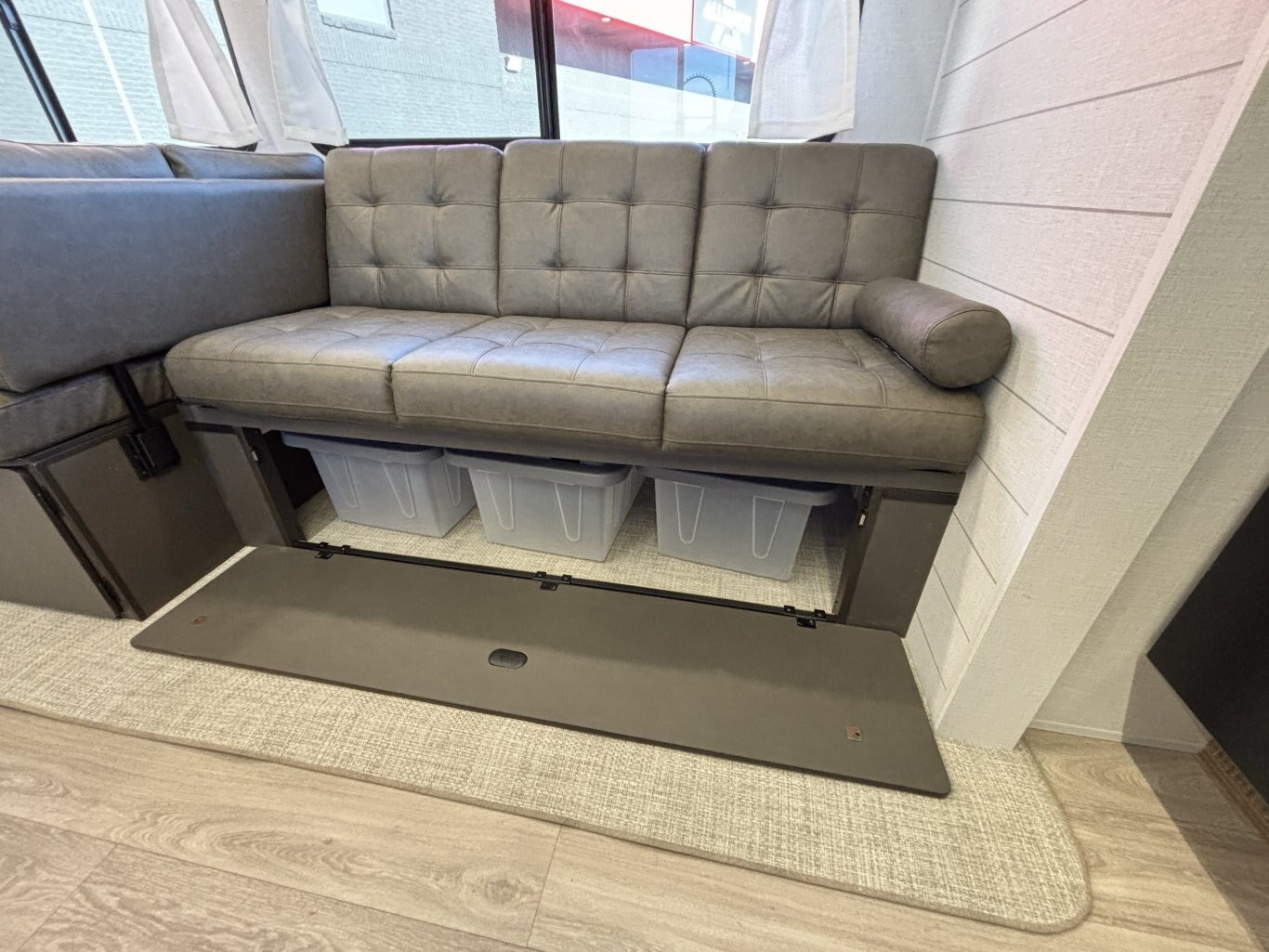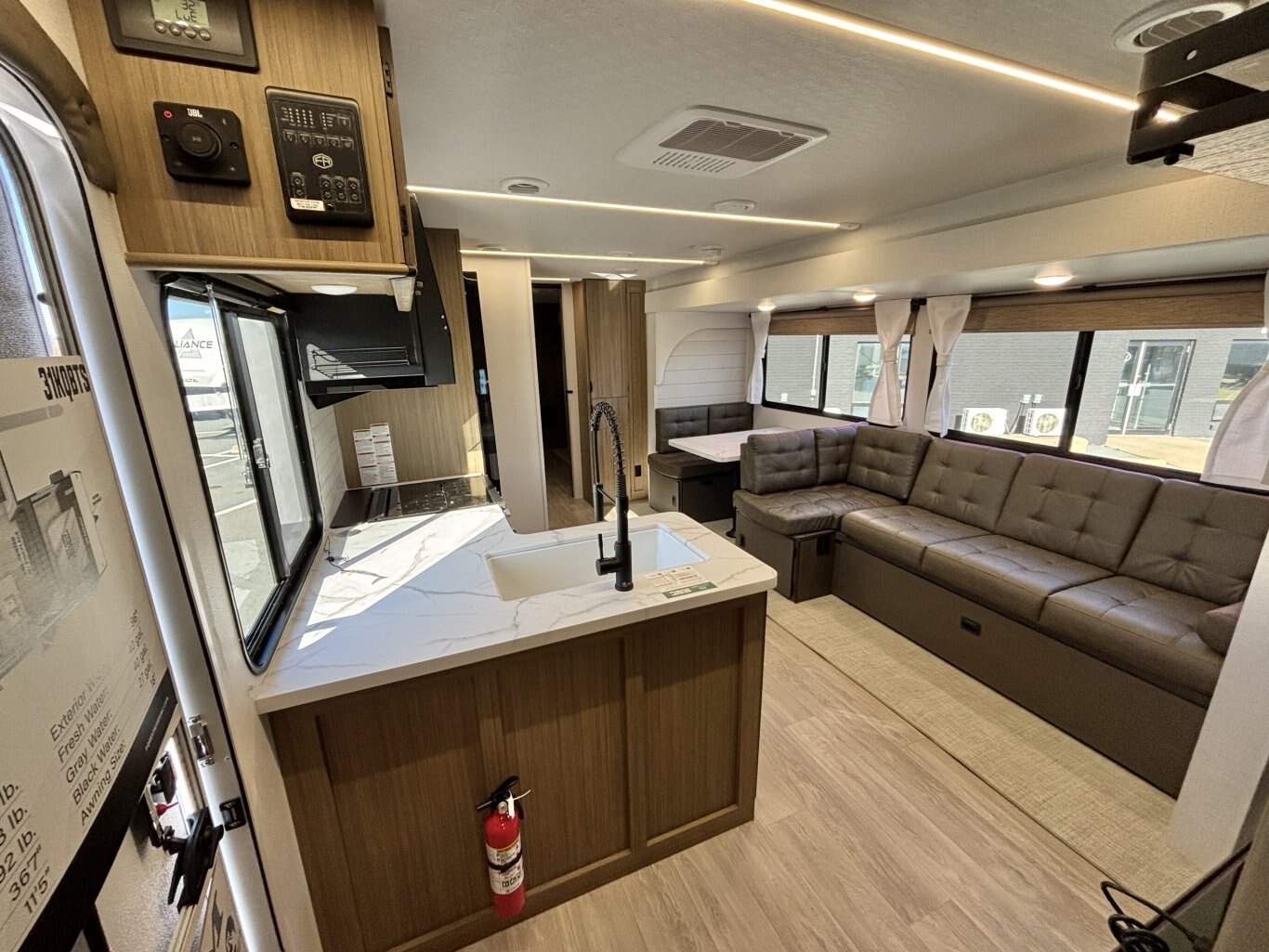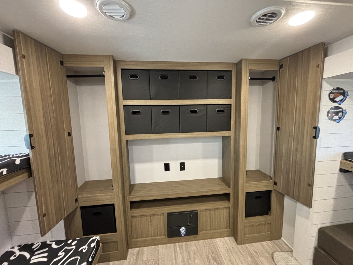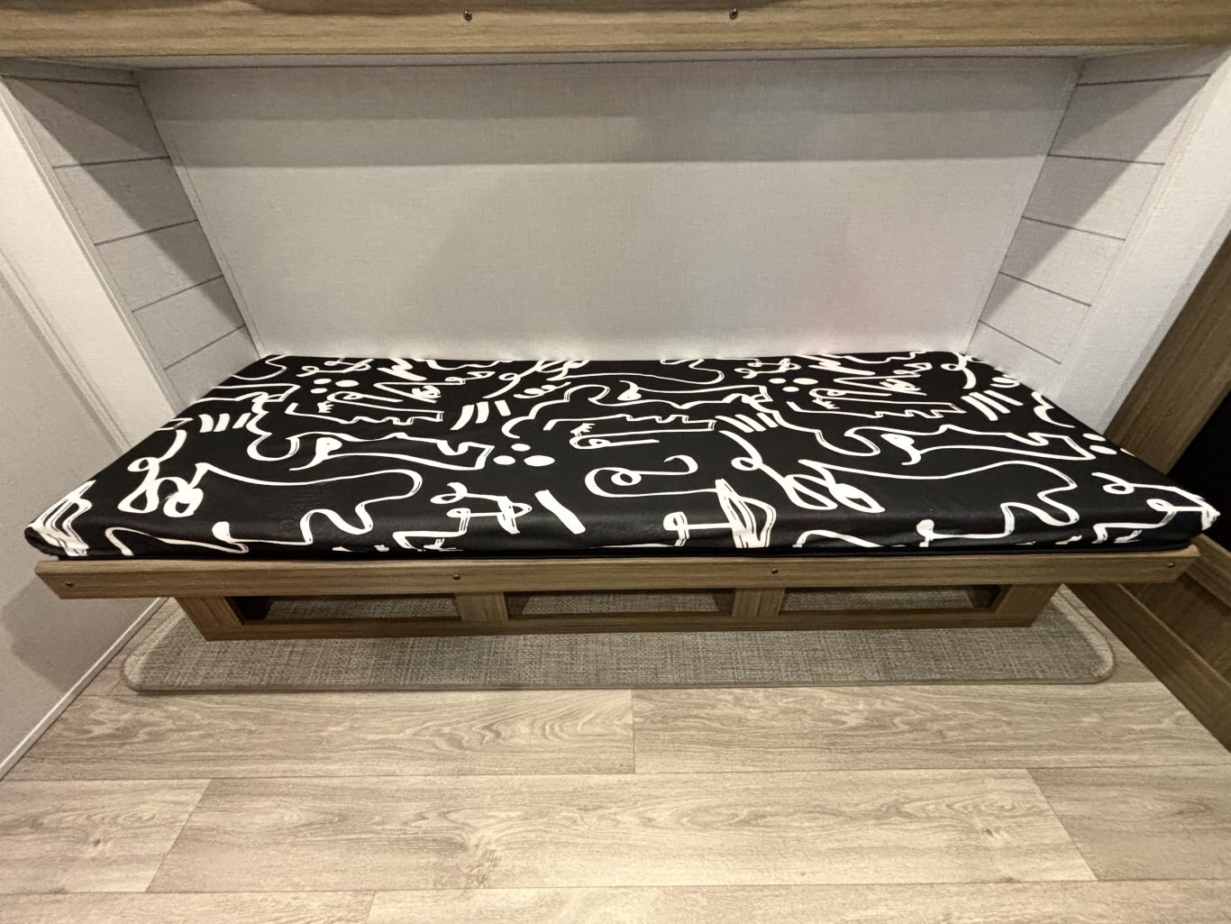 The 31KQBTS is the ultimate bunkhouse, with three total slide outs and an outside kitchen. This well-equipped travel trailer features oversized panoramic windows, the ever-popular U-dinette, which you can customize with the adjacent Versa-Lounge. The kitchen includes a 11 CU. FT. refrigerator and stovetop with oven and LED accents, plus cabinets for all your cooking essentials!