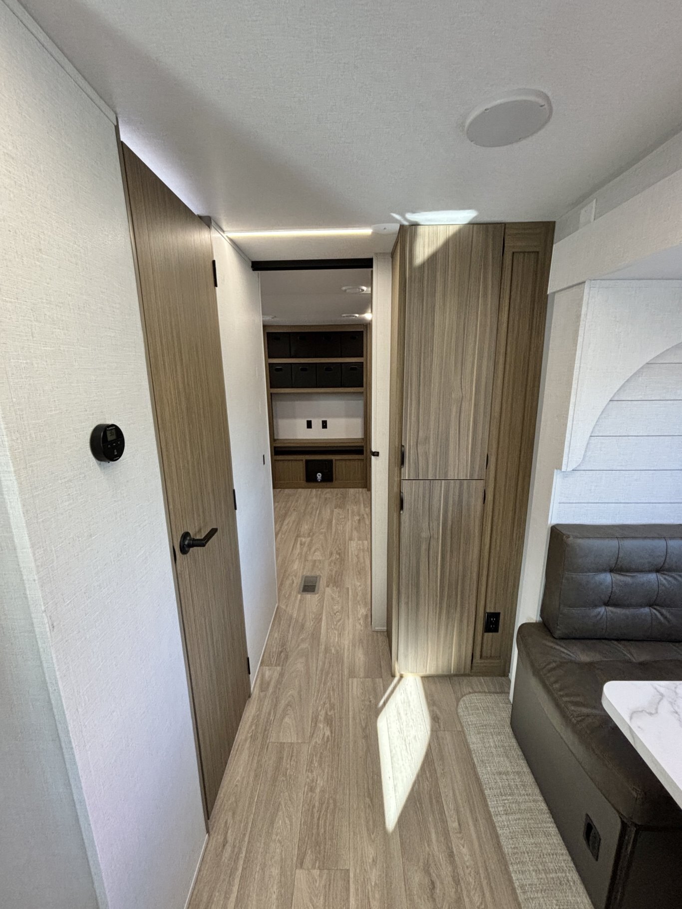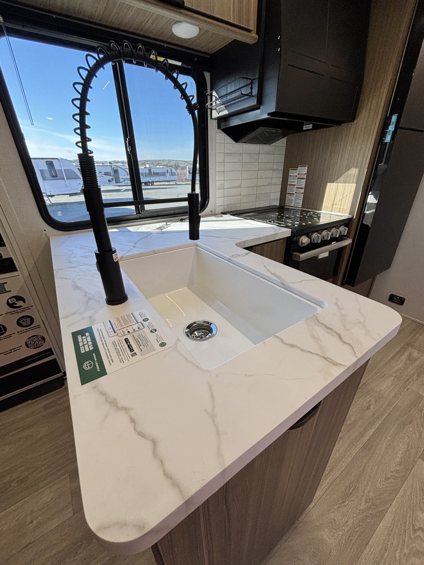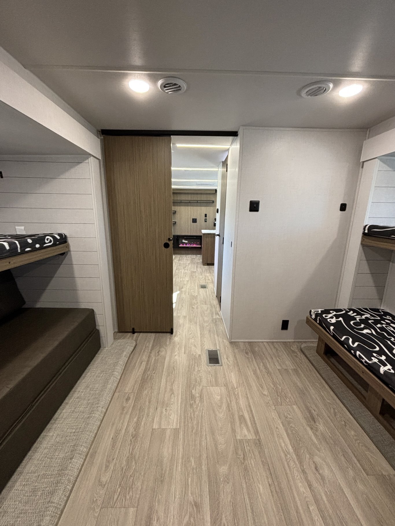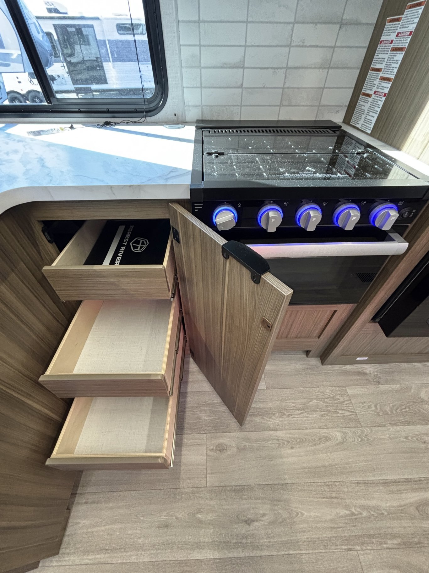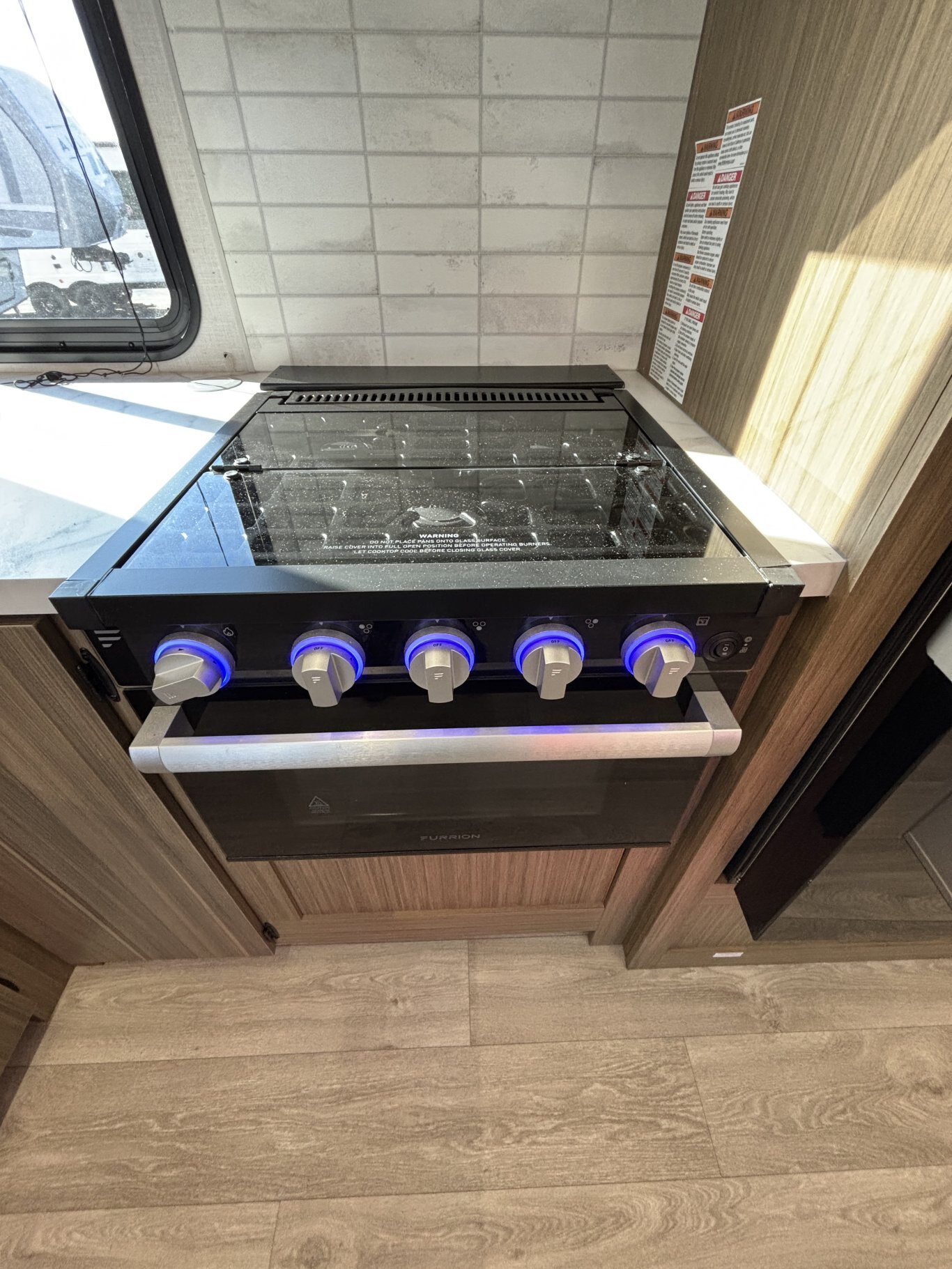 The 31KQBTS is the ultimate bunkhouse, with three total slide outs and an outside kitchen. This well-equipped travel trailer features oversized panoramic windows, the ever-popular U-dinette, which you can customize with the adjacent Versa-Lounge. The kitchen includes a 11 CU. FT. refrigerator and stovetop with oven and LED accents, plus cabinets for all your cooking essentials!