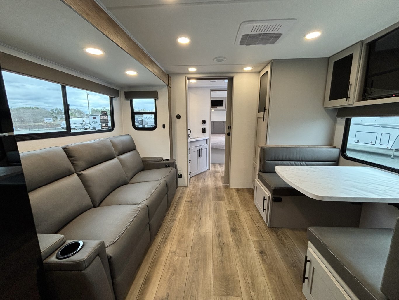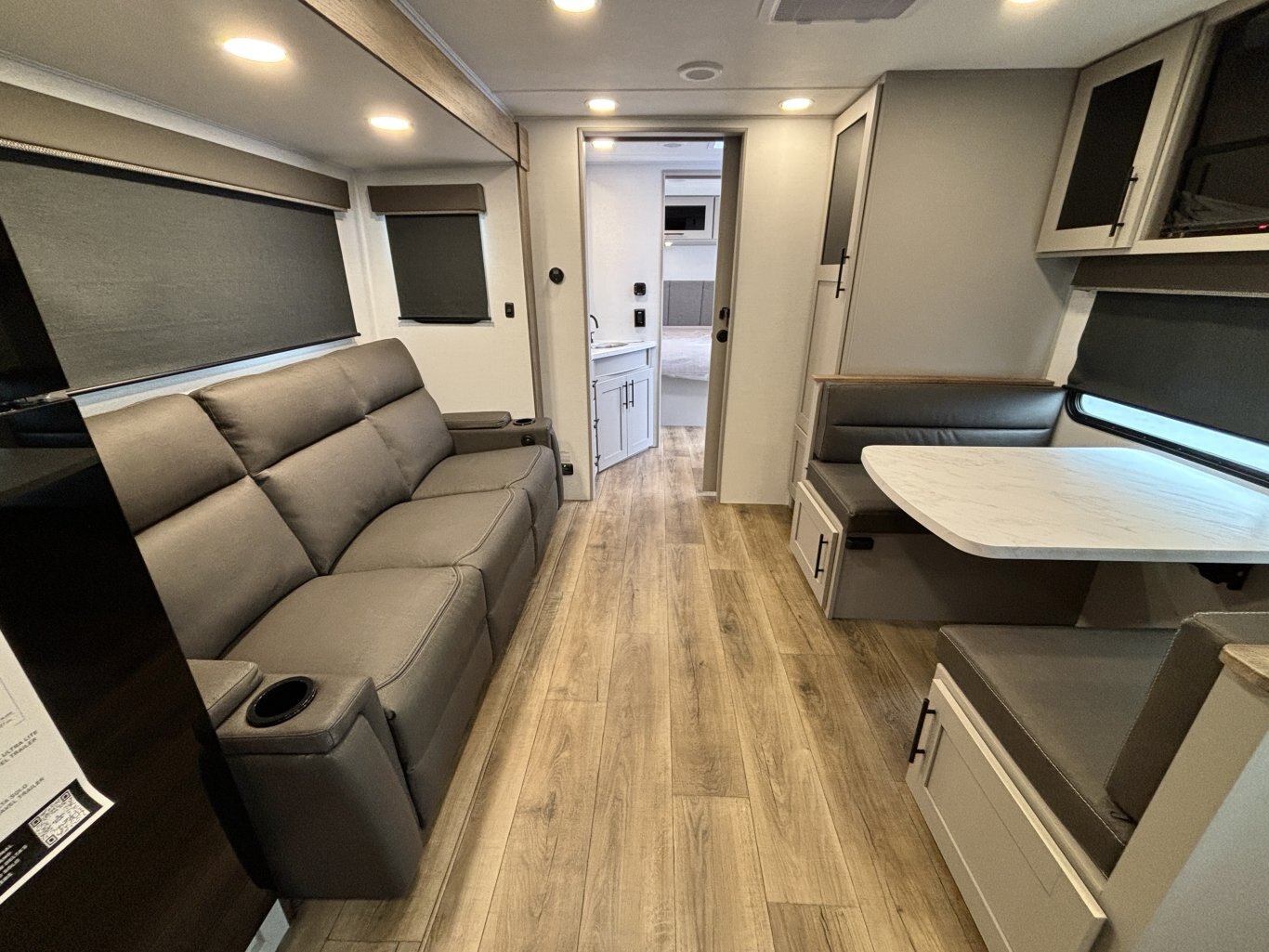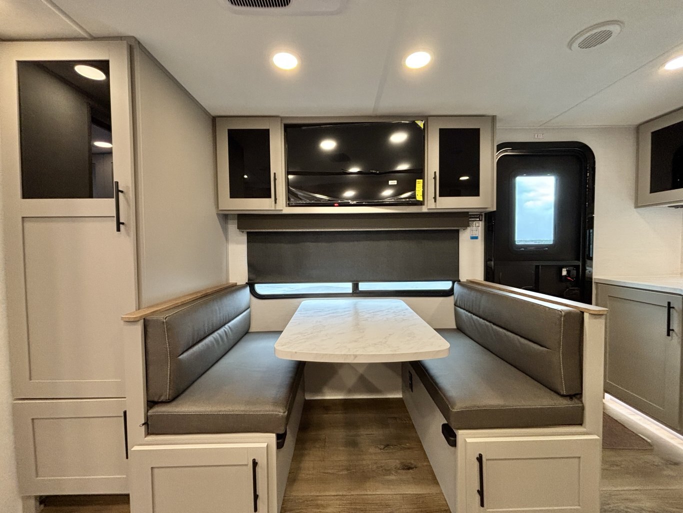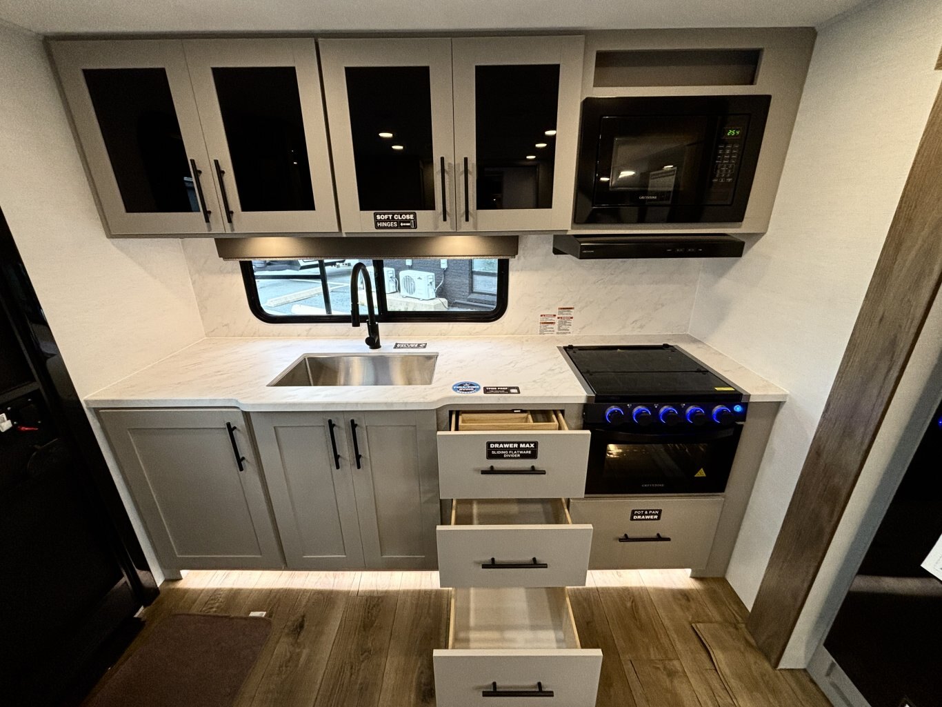At just under 30 feet, the RK234 delivers a surprising sense of openness thanks to its rear kitchen layout, slide-out dinette, and large panoramic windows. The fully equipped kitchen features a residential microwave, high-rise faucet, and ample pantry storage, giving you everything you need to cook and dine comfortably wherever the road takes you.