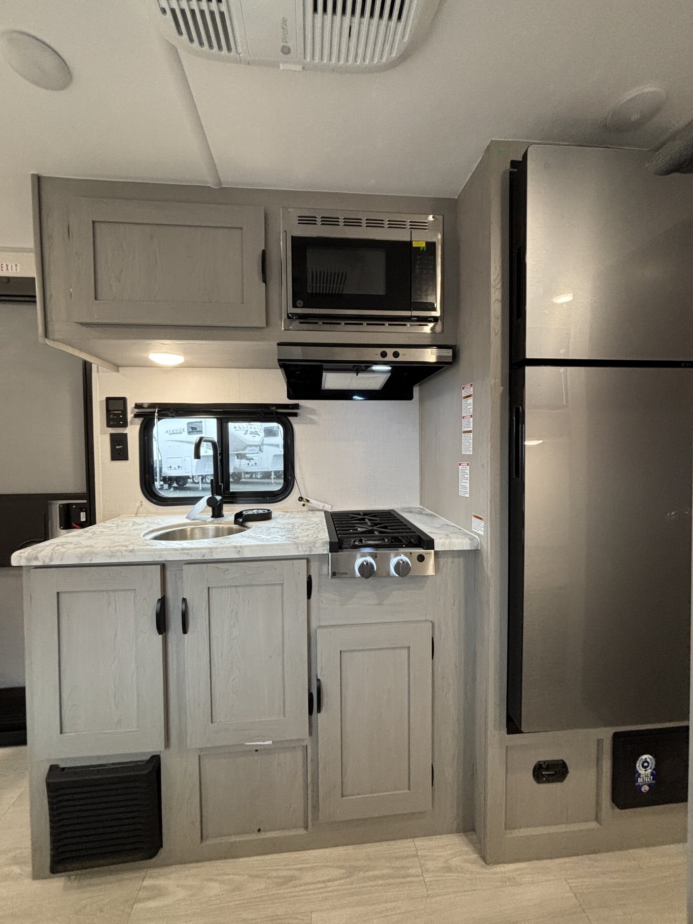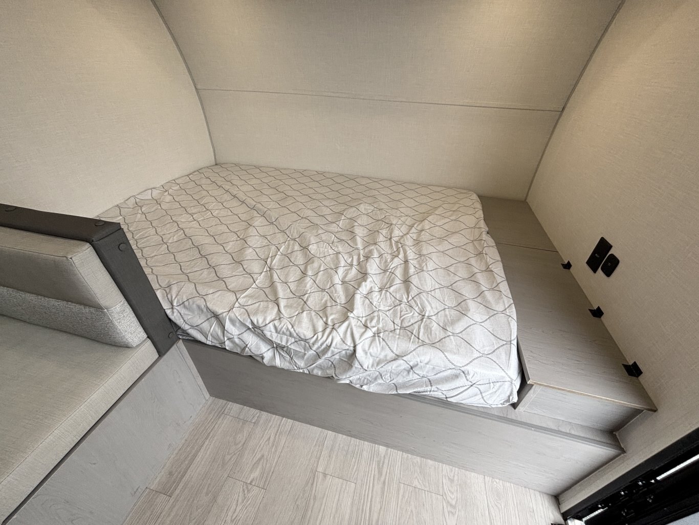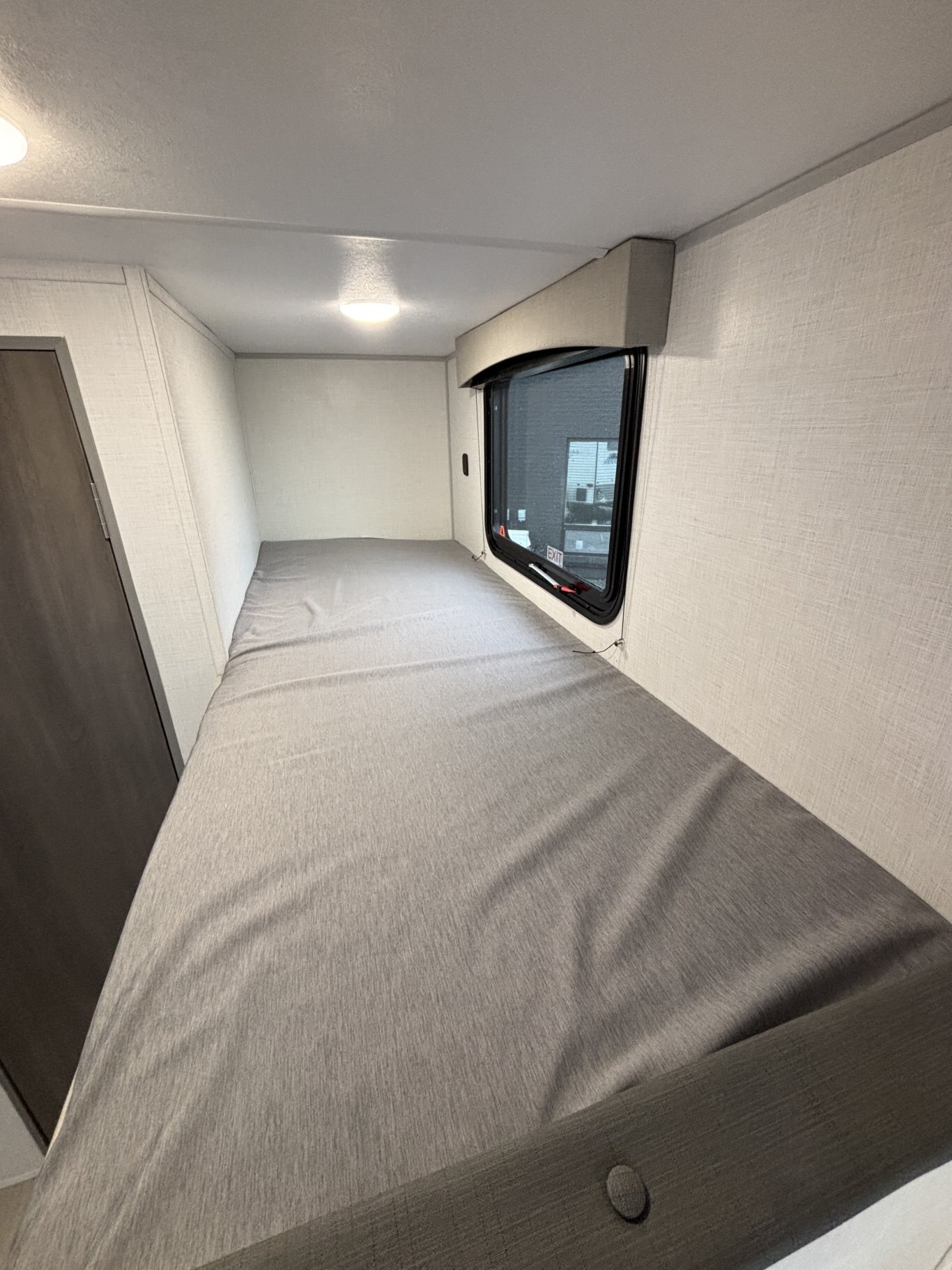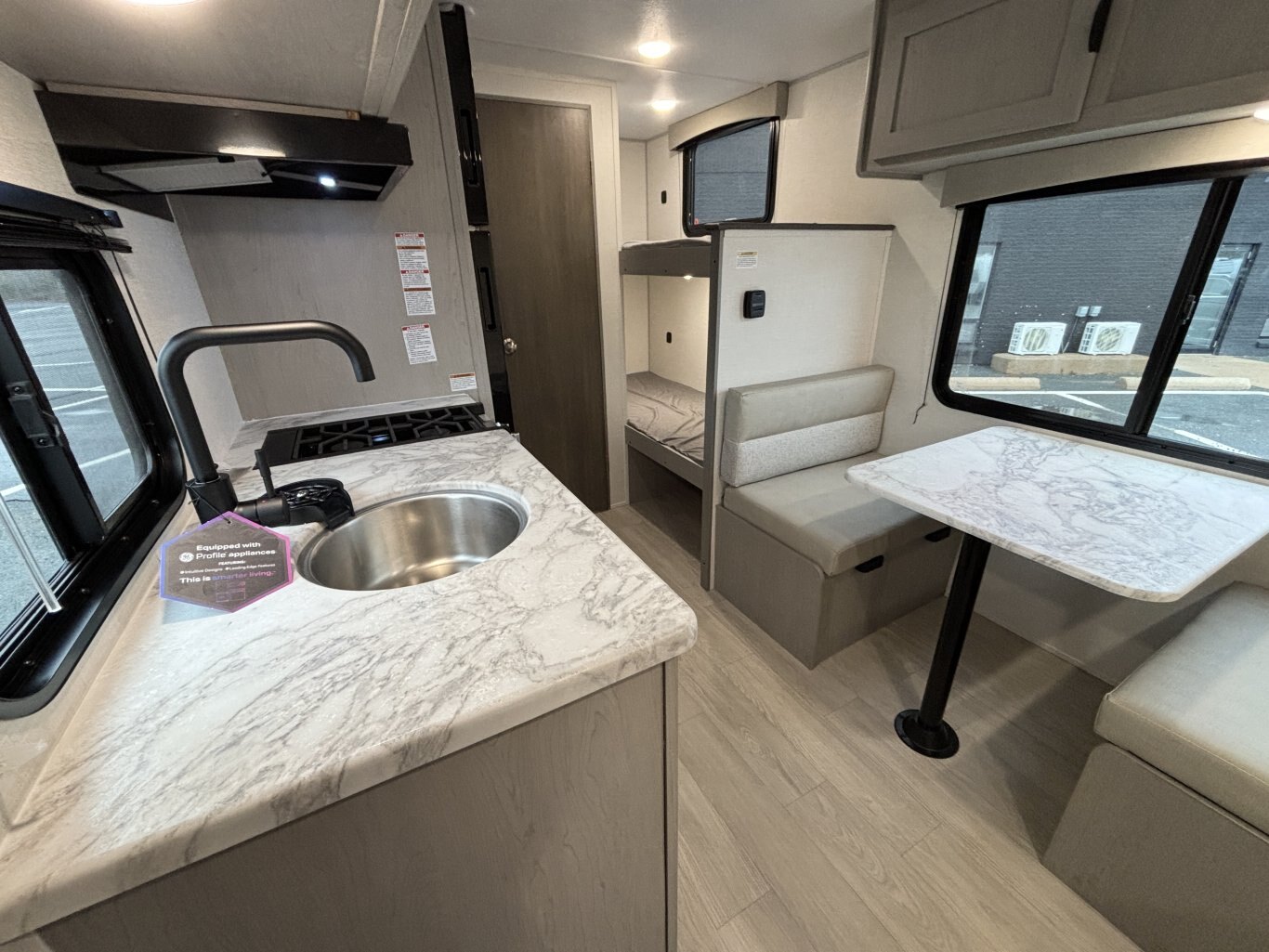 | The most-popular and top-selling single axle bunk model floorplan in the industry. Our commitment to all end-users is that we will always build this sub-3000 lb trailer with a dinette (and not a couch or bench seat – which prevents trailer pass through and a functional eating area for kids), a furnace, and a roof-mount A/C unit. This ensures true camping functionality that is critical for great family experiences. Note: other brands eliminate these keys features. #CampEasy |