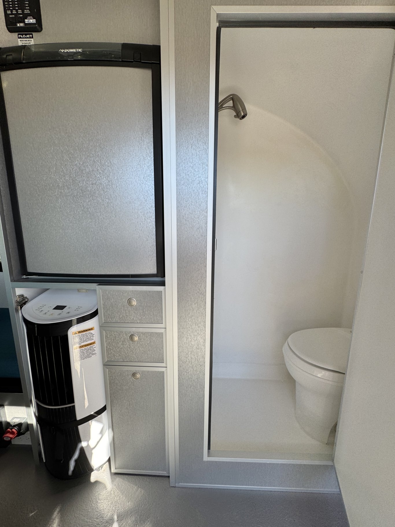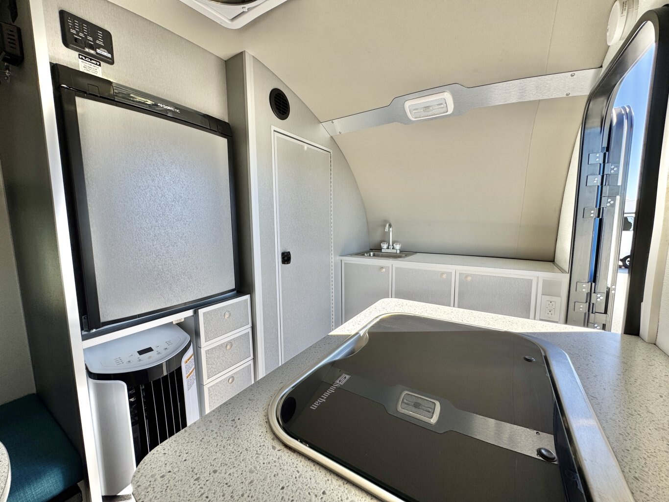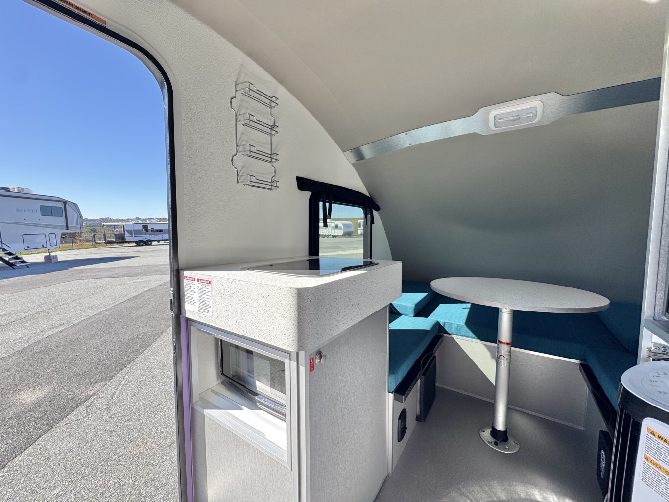 2023 Helio O2 – A lightweight 14′ fiberglass 1,550lbs travel trailer built for couples. Features a queen bed, wet bath, and compact kitchen with fridge and two-burner cooktop. Durable, easy to tow, and perfect for weekend adventures.