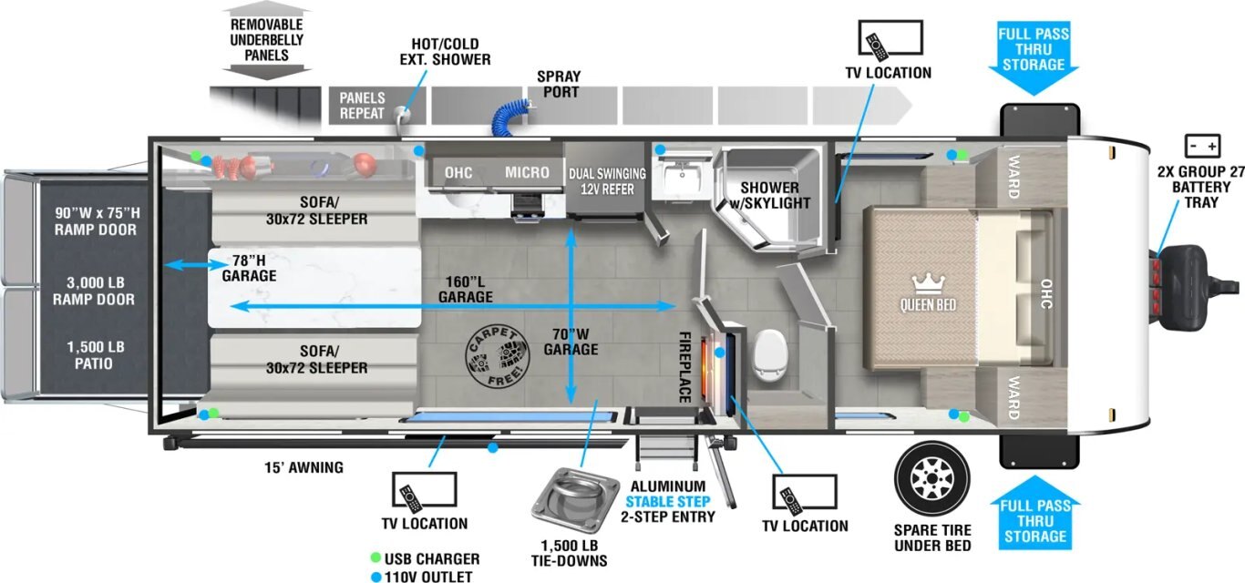 • Dual Group 27 Battery Trays for Extended Camping Power