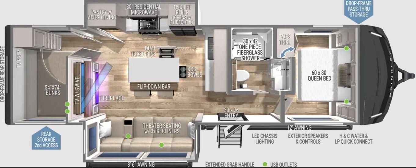 Heated & Insulated Pass-Through Storage Compartment w/ Motion Lighting & Power Outlets