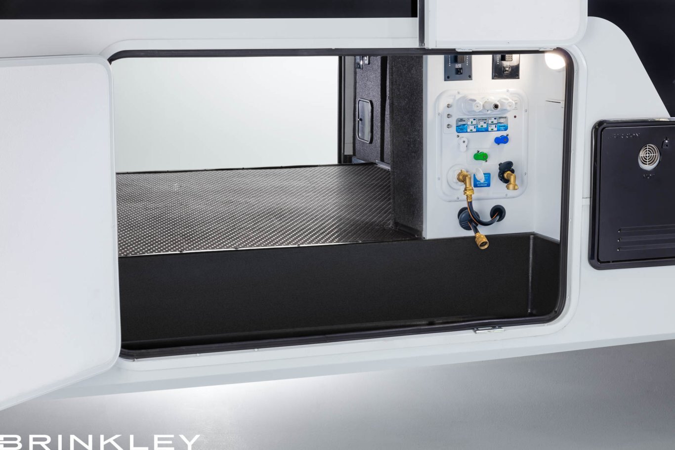 | Monotube Chassis (Brinkley Spec & Certified) Road Defense Triple Powder Coated Chassis One-Touch Automatic 6-Point Leveling System w/ Wide-Stance Jacks Heavy Duty 8,000 lbs. Axles w/ 8,000 lbs. Leaf Springs Commercial Grade Load Range H 16-Ply Tires 17.5″ Custom Aluminum Luxury Wheels Banded Tire Pressure Monitoring System (TPMS) w/ Wireless Display Road Debris Galvanized Wheel Well Shields Counteract Tire Balancing Beads Brinkley Model Z Touring Package: ✔ CURT Touring Coil Suspension (TCS) System (reduces frame shock absorption by 50%) ✔ Anti-Lock Braking System (ABS) w/ Anti-Sway & Dynamic Brake Boost ✔ ABS System Mobile App w/ Odometer & Status ✔ CURT Helux™ King Pin w/ Coil Spring & Shock-Absorber Gen-Y® Executive Gooseneck w/ SnapLatch Torsion Flex 2″ Rear Receiver Hitch w/ 4-Way Connector (300 lbs. Tongue Weight 3,000 lbs. GTW) MAX-Vision™ Reverse Lighting System (Includes Backup Lights & Underbody Ground Lighting) Upgraded 6' Coiled Breakaway Safety Cable LED Underbody Ground Lighting |