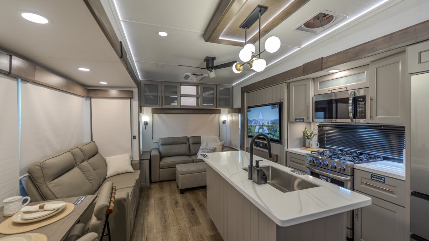 Standard for Luxury 5th WheelsWe listened to you. The Paradigm by ALLIANCE RV is the culmination of feedback from thousands of full time RVers addressing common concerns ranging from running gear and coded wiring to the kitchen sink. Executed by a team of industry veterans with hundreds of years of combined experience, we are proud to present you a luxury fifth wheel designed to provide you the most functional, highest quality RV. |