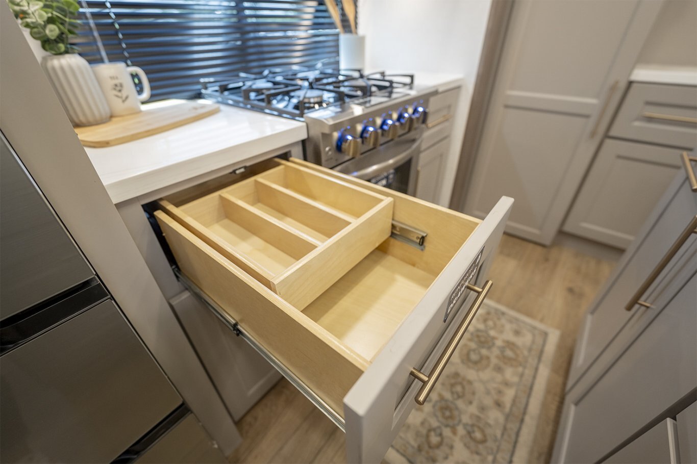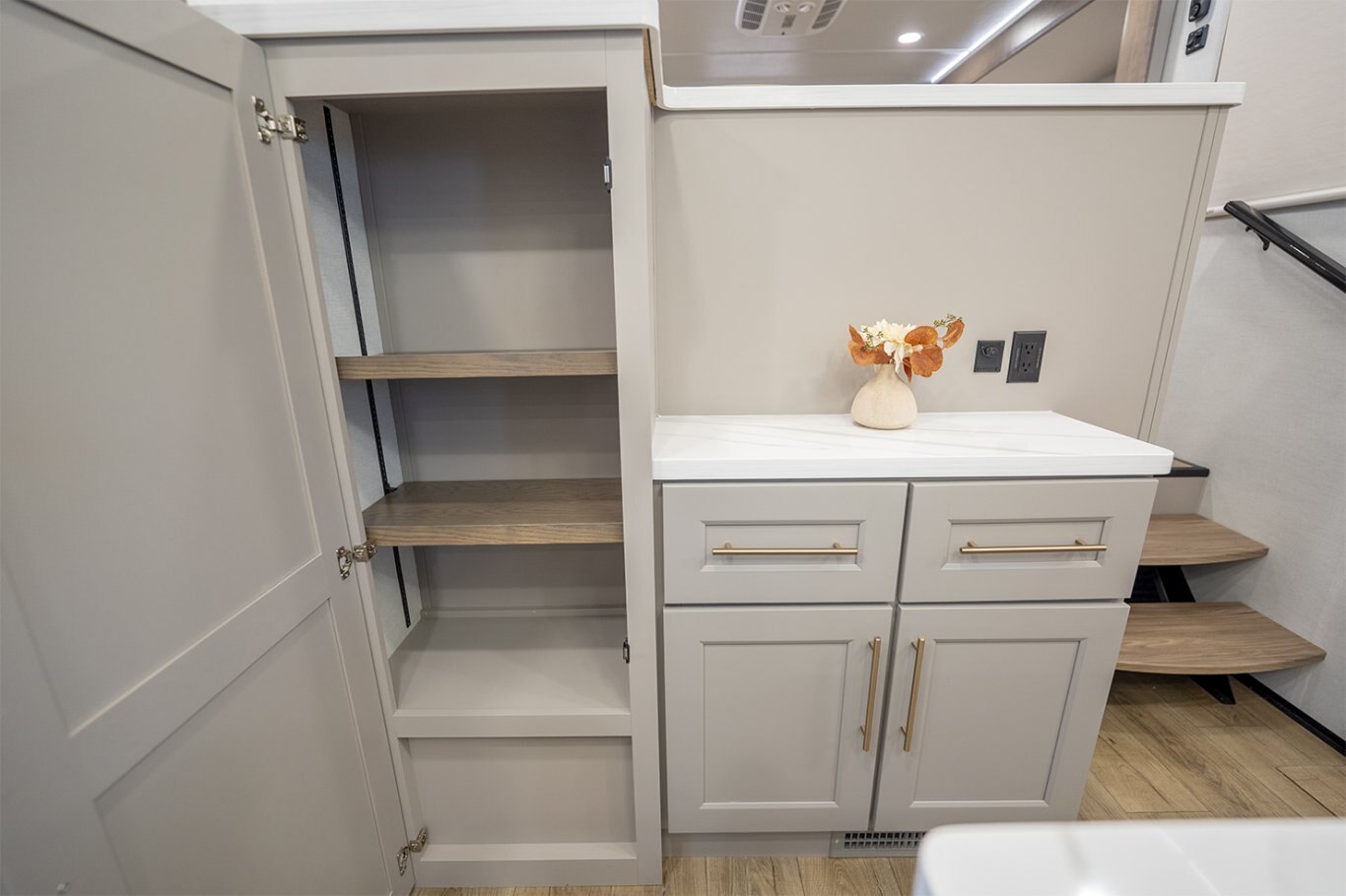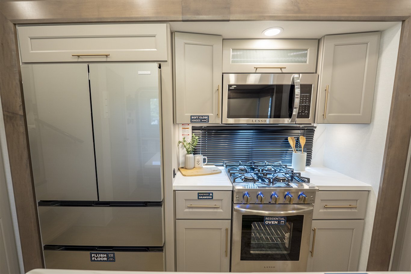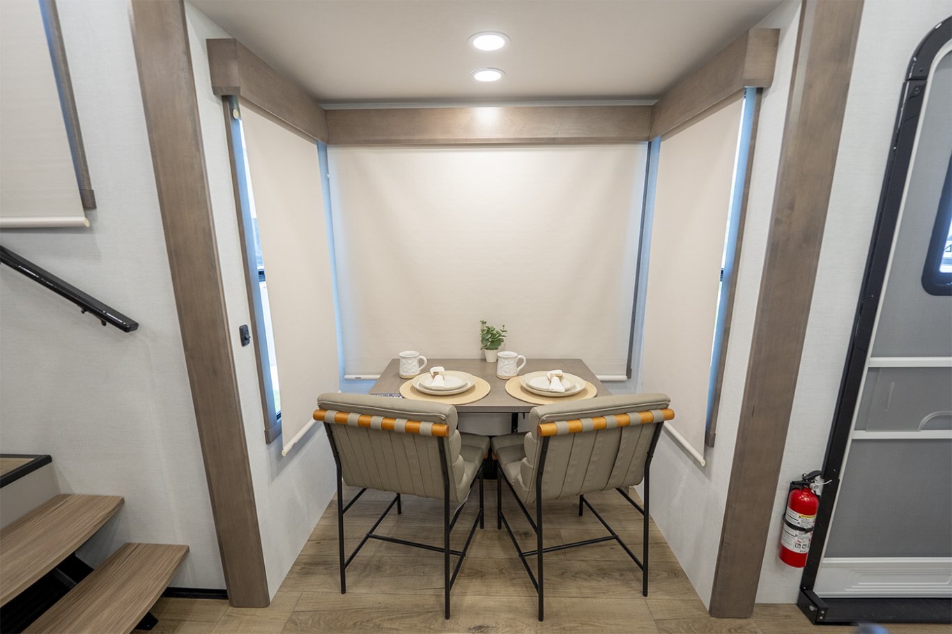 The Alliance RV Paradigm 385FL fifth wheel redefines luxury RV living by seamlessly blending innovative design with high-end amenities. Crafted for full-time RVers and those seeking extended adventures, the 385FL offers unparalleled comfort, functionality, and craftsmanship. At the heart of the Paradigm 385FL is its impressive front living room—an inviting, elevated space ideal for entertaining or relaxing. Dual opposing sleeper sofas and a power-reclining theater loveseat provide ample, plush seating options, all oriented toward a 55" smart HDTV positioned above a cozy electric fireplace with hidden storage. Expansive atrium-style windows flood the space with natural light, offering breathtaking views and an airy, open ambiance. The mid-coach gourmet kitchen is equally impressive, featuring a 19 cu. ft. 12V residential refrigerator, LG solid surface countertops, and a large center island with an undermount sink and high-rise faucet. Cooking is elevated by the inclusion of a four-burner Insignia range and oven, a residential-sized microwave, and a spacious pantry with LED motion lighting. With dishwasher prep and premium finishes throughout, this kitchen rivals any luxury residential setup. Toward the rear, the private master suite offers a king bed on a slide-out for increased floor space, paired with a flip-top dresser, overhead cabinetry, and a wall-mounted smart TV. It connects seamlessly to a spacious rear bathroom outfitted with a 48" x 30" residential-style shower, solid-surface lavatory, porcelain toilet with soft-close seat, and abundant storage—including washer/dryer prep for extended stays. A second half bath near the entry ensures added convenience for guests. |