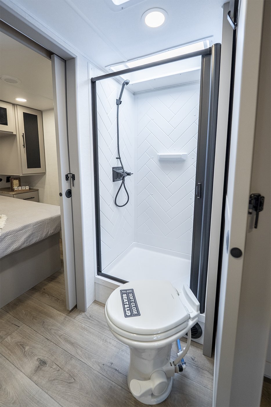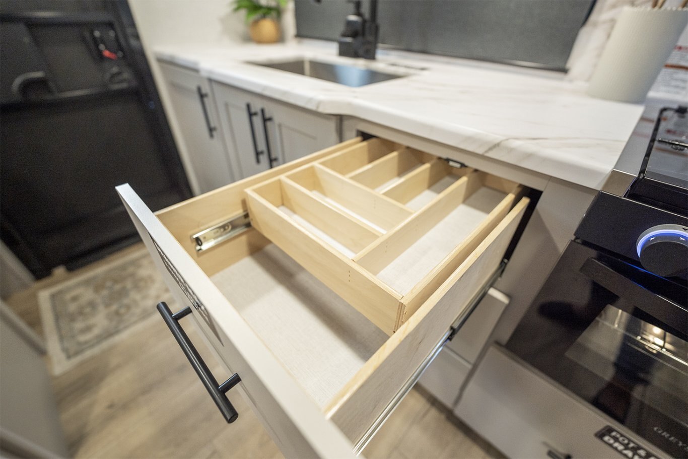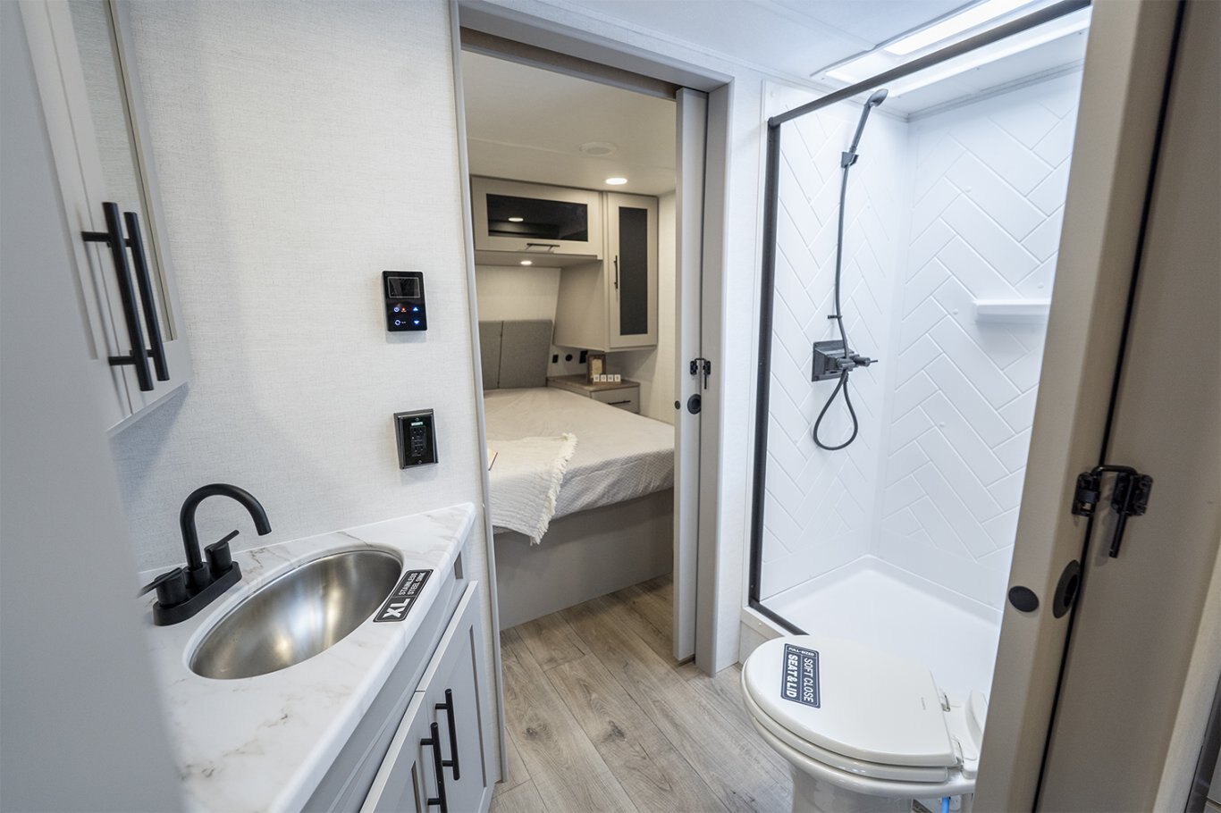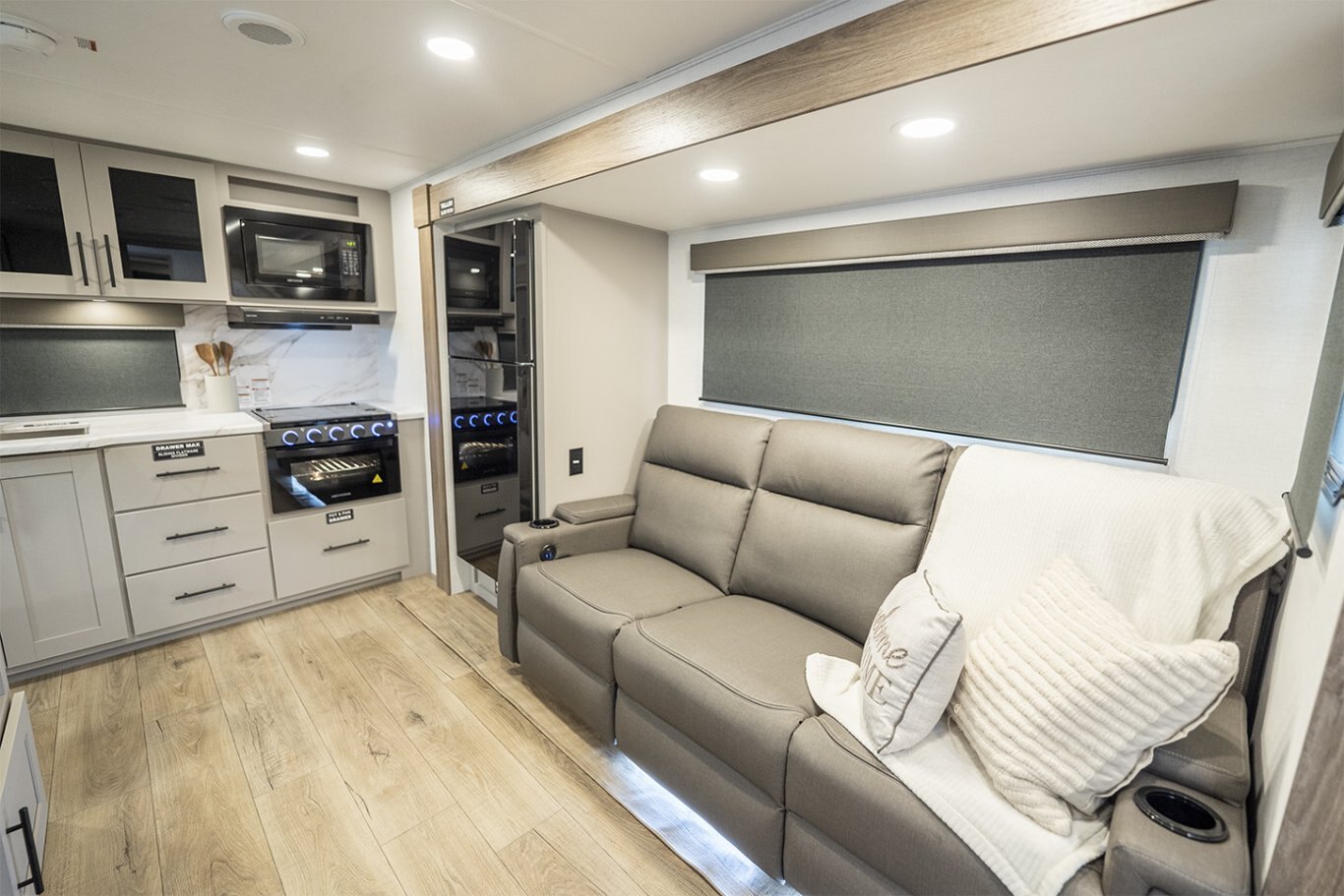 At just under 30 feet, the RK234 delivers a surprising sense of openness thanks to its rear kitchen layout, slide-out dinette, and large panoramic windows. The fully equipped kitchen features a residential microwave, high-rise faucet, and ample pantry storage, giving you everything you need to cook and dine comfortably wherever the road takes you.