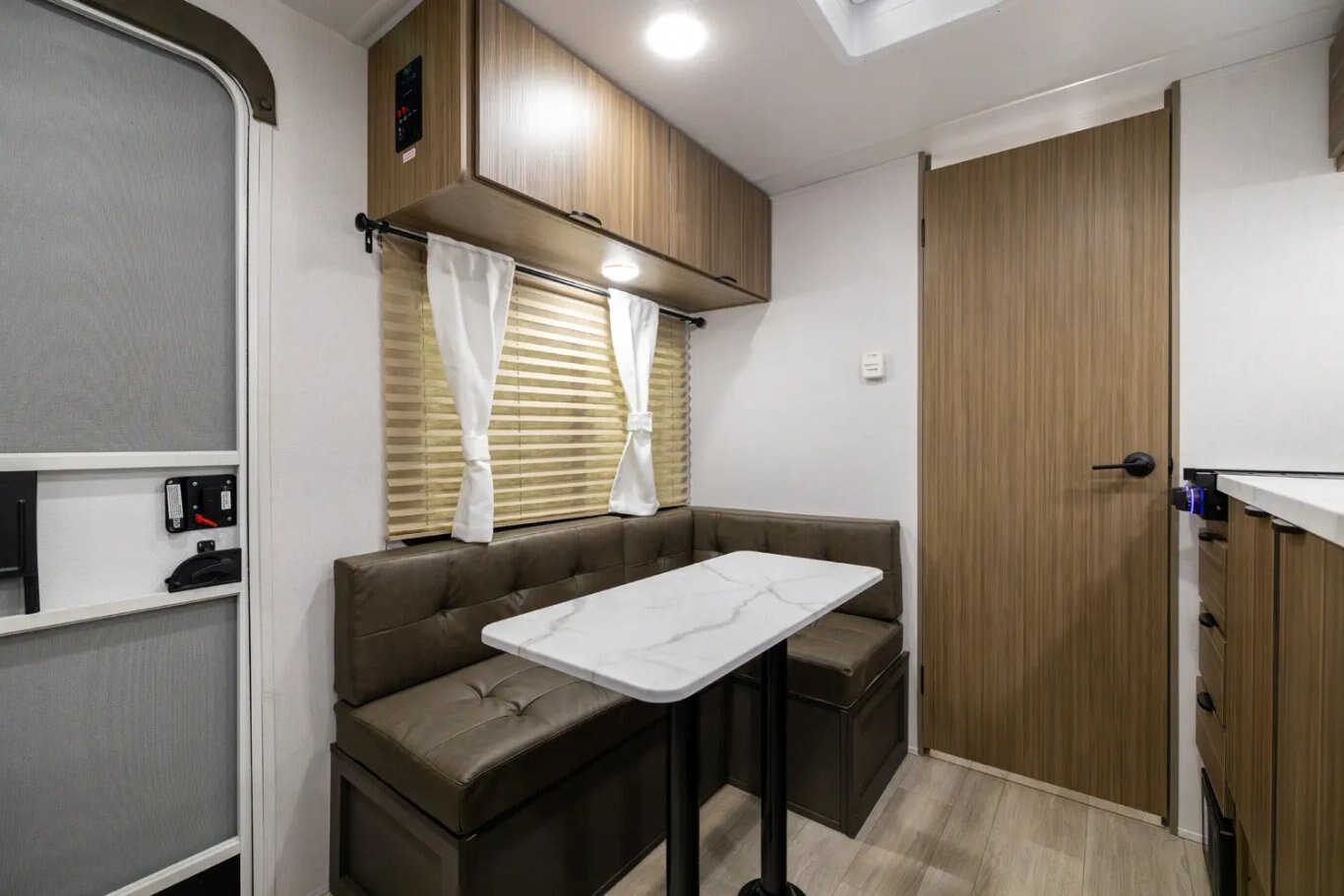 Limited Edition Camp Ready Package: Lite Weight Towing Approved 6 Gallon DSI Gas Water Heater Backup Camera Prep Power Roof Vents Sofa Seating In Place of Dinette 5/8" Tongue and Groove Flooring Carpet Free with One Piece Linoleum Powder Coated I-Beam Chassis for Longevity Dual Deep Cycle Battery Capable Holding Tray Single 20# LP Bottle