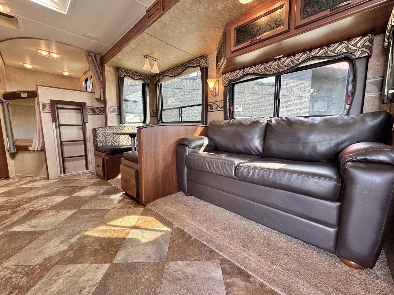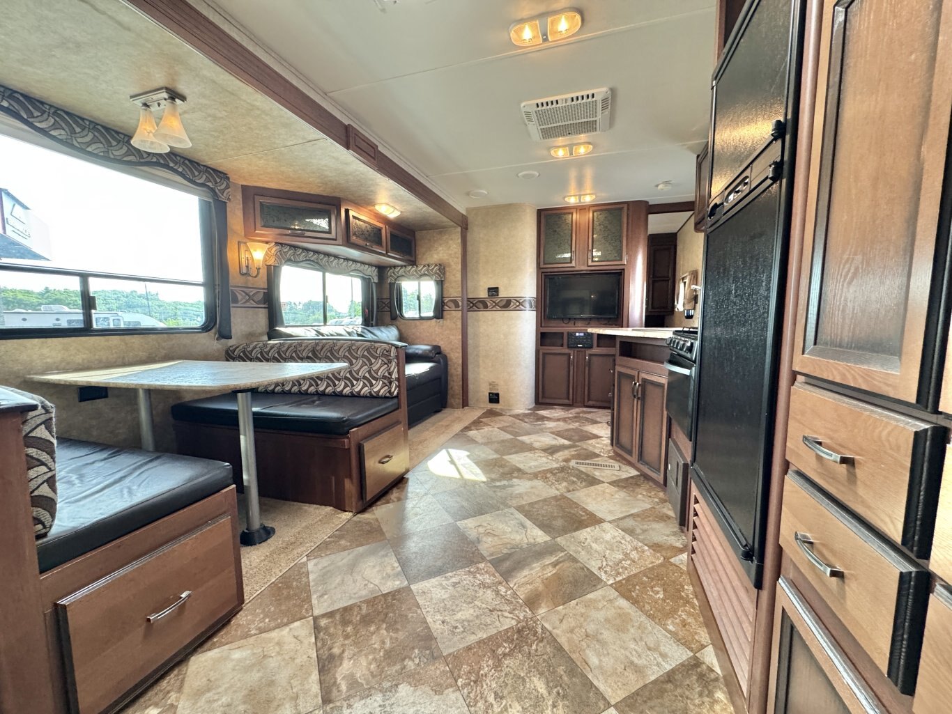 Length: 31′ 10″ · Dry Weight: 5,264 lb · Sleeps up to 10 (front queen, rear bunks, dinette, sofa)