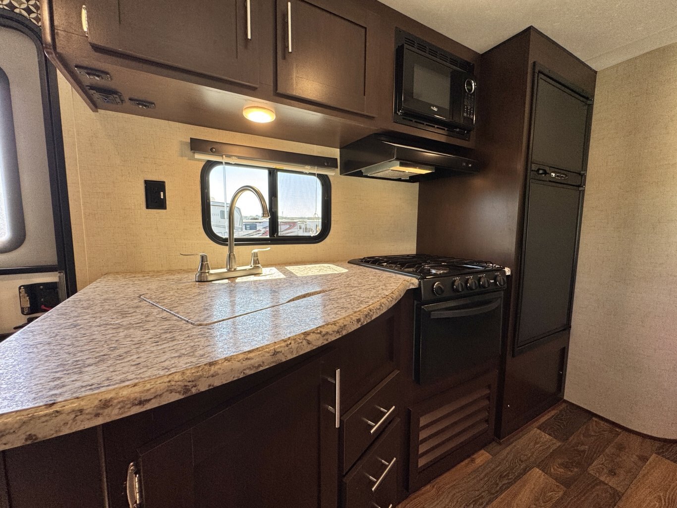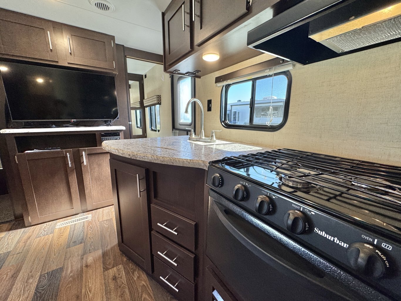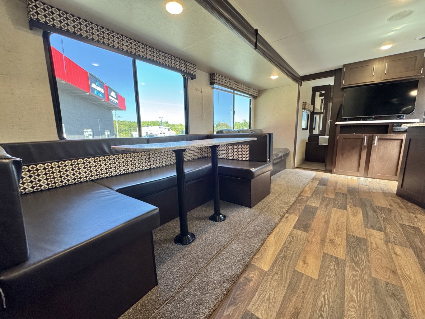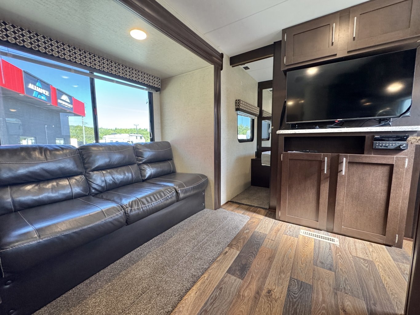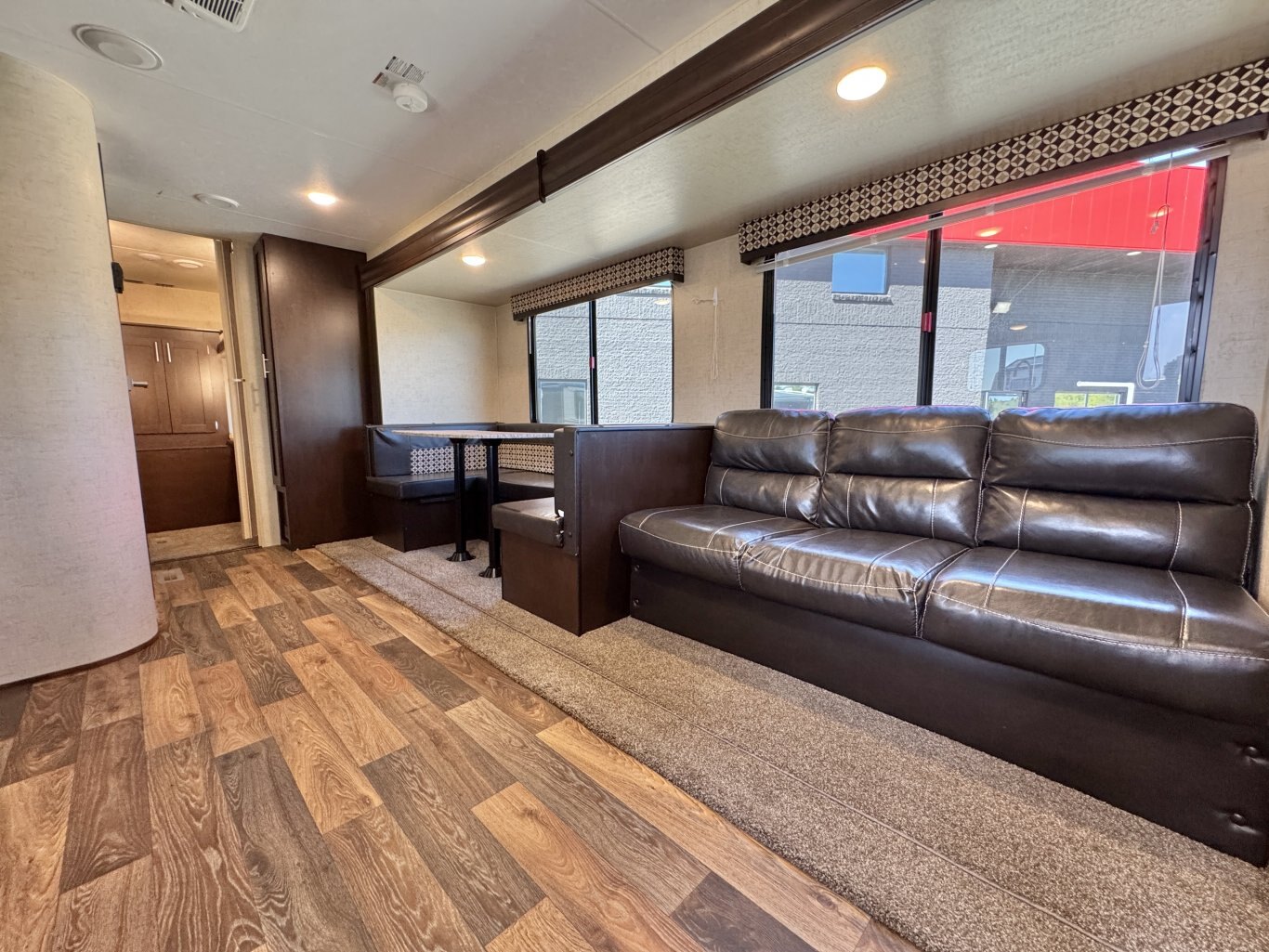 This 32′ 8″ family bunkhouse trailer sleeps up to 10, featuring a front queen bedroom, four rear bunks, plus convertible dinette and sofa beds. A single slide-out opens up the interior, now enhanced with a slide topper to shield the slide and boost its durability. At 6,100 lb dry weight with an 8,000 lb GVWR, it’s solid yet towable. Onboard comforts include a full center kitchen, rear bathroom, 16′ power awning with LED light, dual propane tanks, and a mid-size fridge—all designed to make family camping both spacious and comfortable.