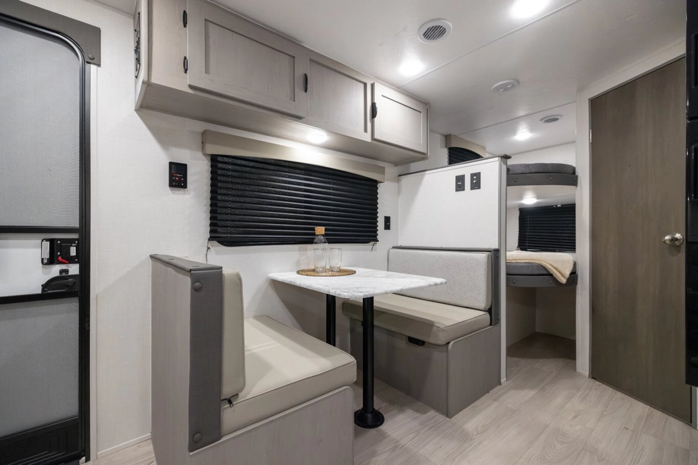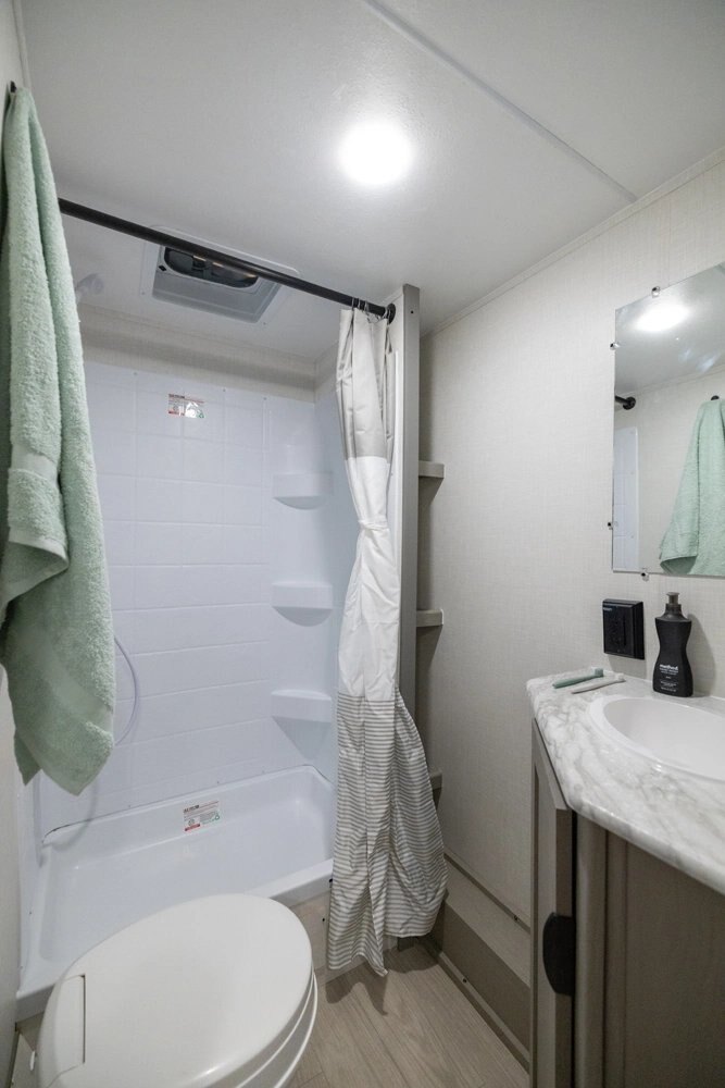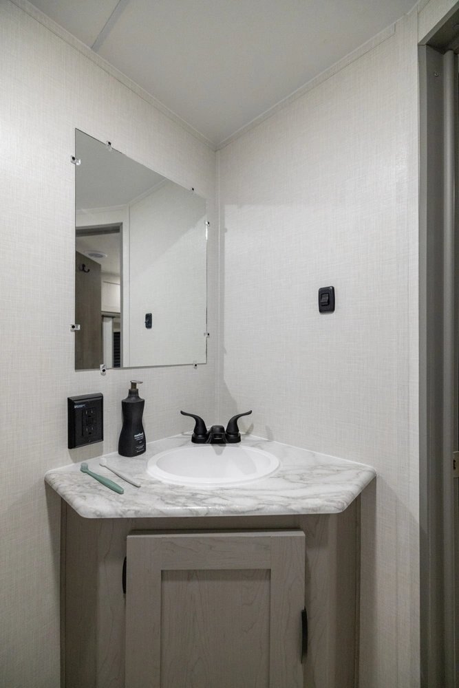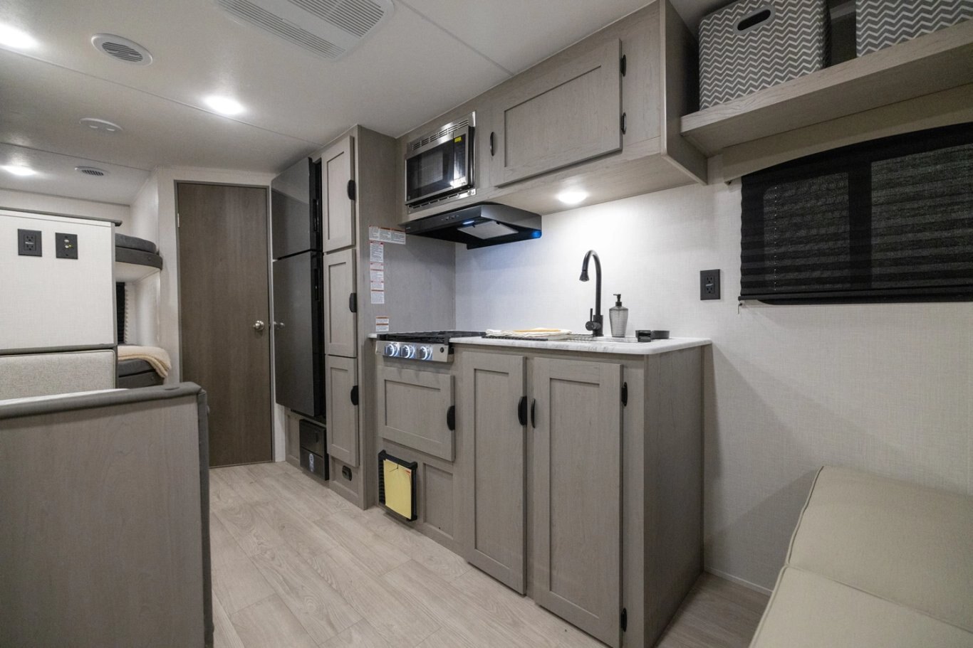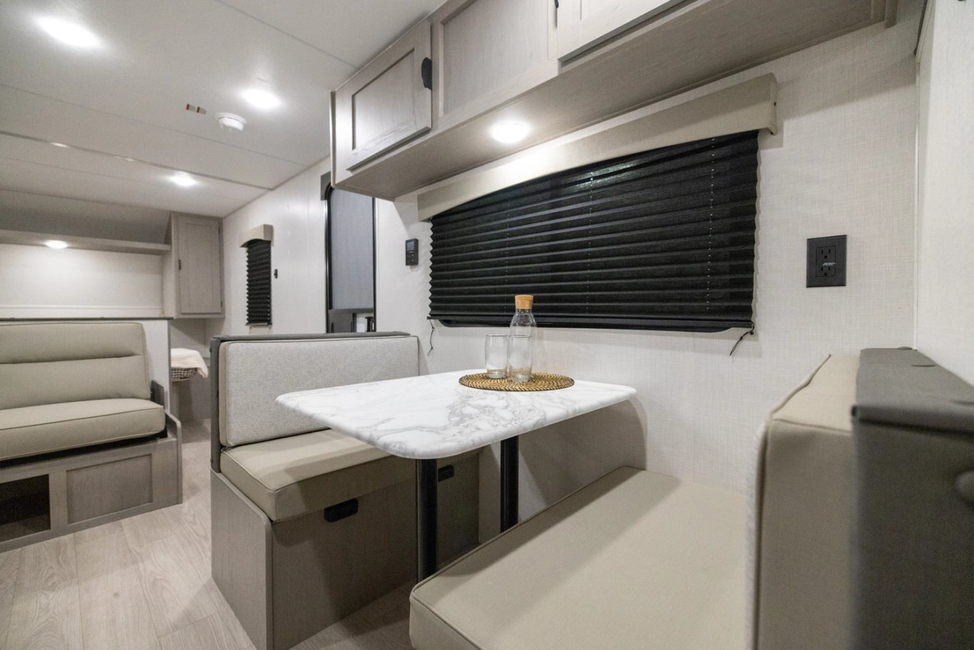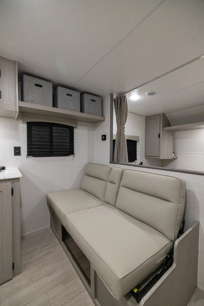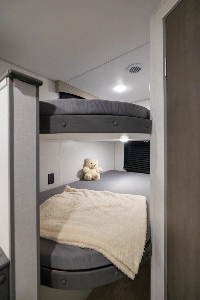 | This is a relaunch of the industry’s top selling non-slide bunk house floorplan. The 26BH features an open-space concept. It features double-over-double bunks, full pantry, large bathroom with added storage and an interior bathroom sink, 4-person dinette, prepped for an outside kitchen, and a jack-knife sofa with side-overhead cabinets. This trailer is built for a family with more than two kids that wants more interior living space and comfort. #CampEasy |