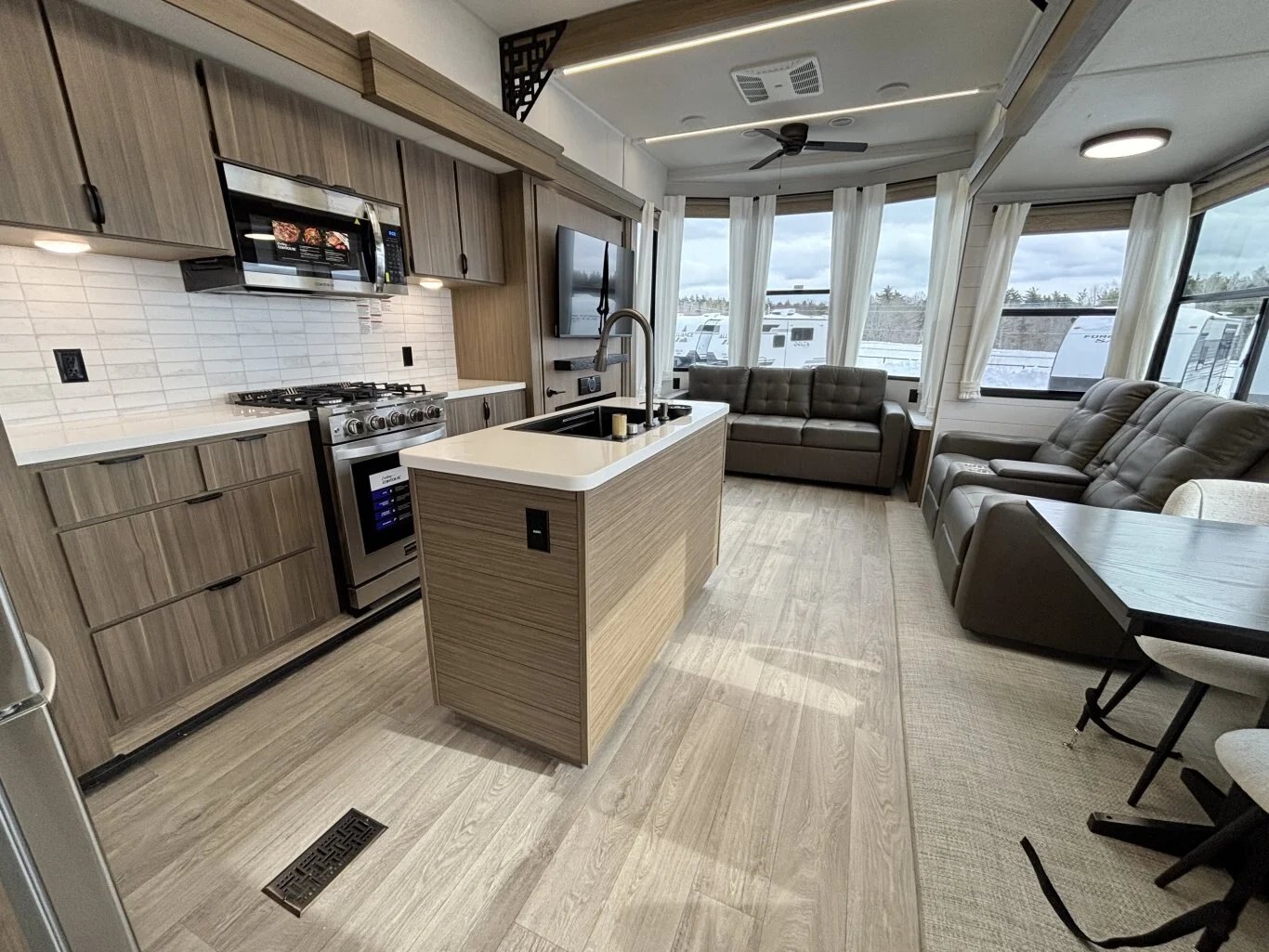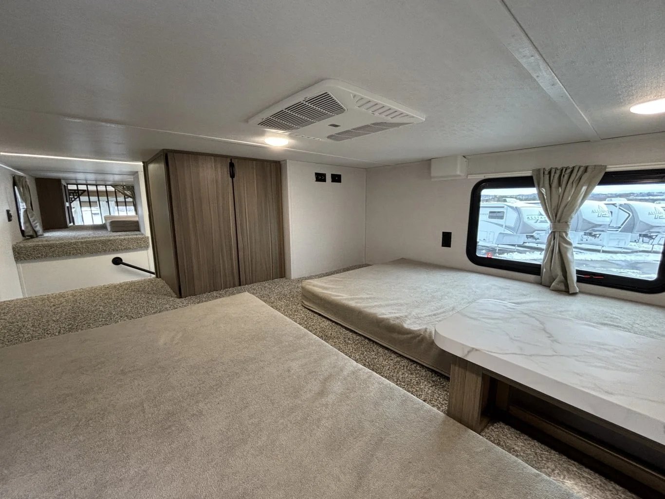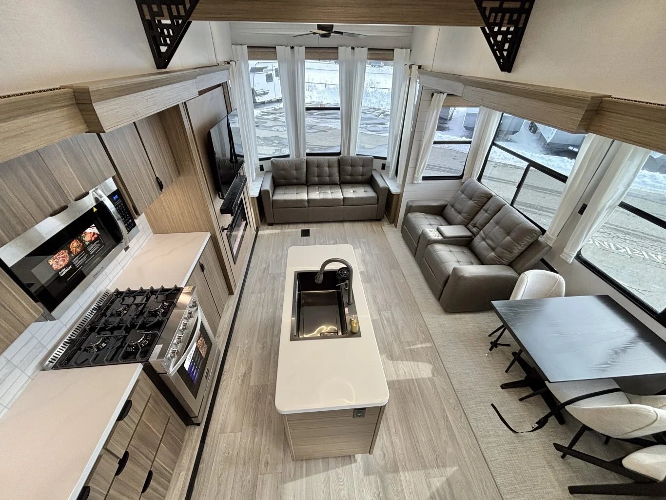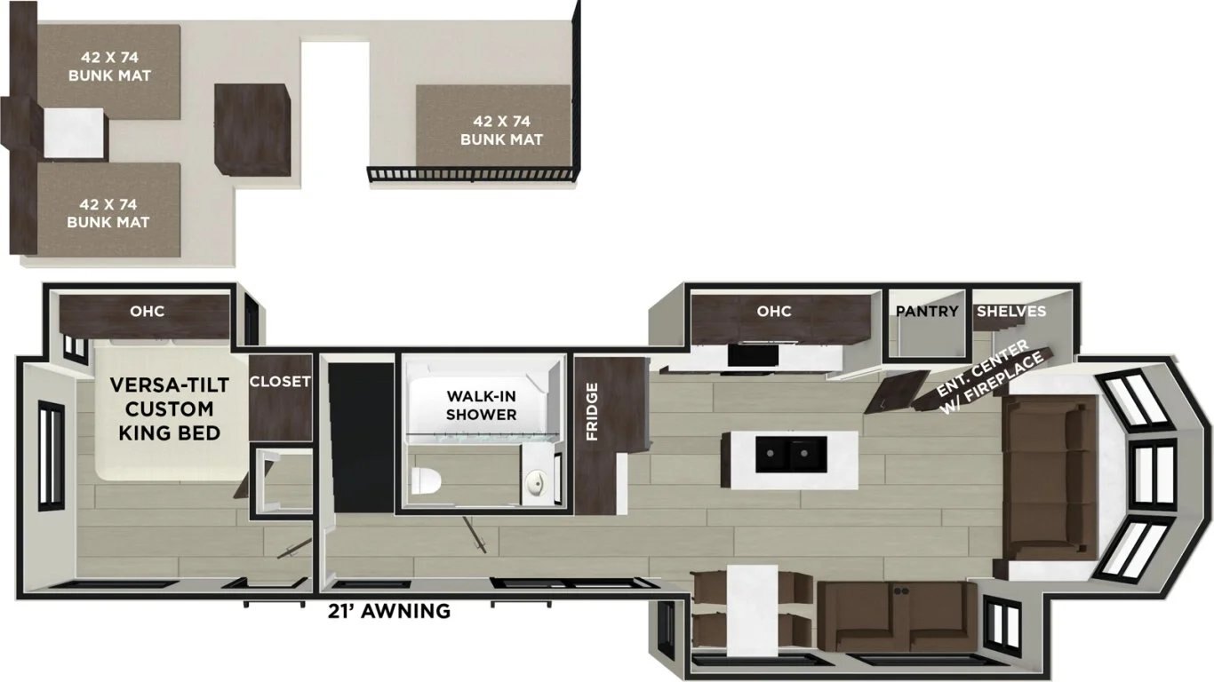 | The Salem Grand Villa 42FLDL is a truly outstanding home away from home. This model features a unique HUGE double loft bonus room with three bunks—perfect for bringing the kids (and maybe a few friends!) along. The bathroom includes a walk-in shower and lots of cupboard space, while the island kitchen provides residential appliances and plenty of room for the aspiring chefs in your family. |